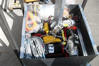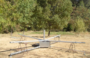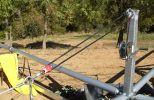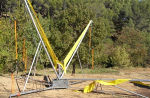 Le petit mât central, muni d’anneaux destinés à recevoir les câbles de maintien des mâts en aluminium constitue la pièce la plus importante.
